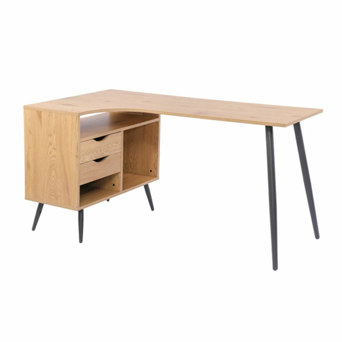 Iber kirjoituspöytä tarjoaa säilytystilaa kahdessa vetolaatikossa ja kolmessa erikokoisessa avotasossa.