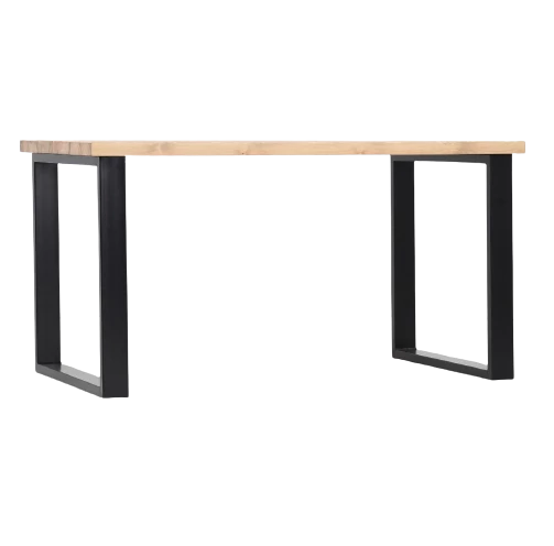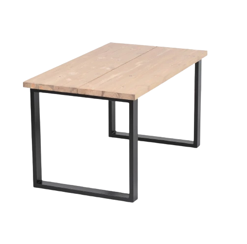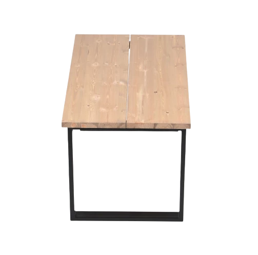 Seela ruokapöytä näyttävällä ja tukevalla lankkukannella. Kannen lankut on nättävästi harjattu, jotta pinnasta on saatu kauniin rustiikkinen. Kannessa on kauniisti näkyvissä puun syyt ja kuviointi.