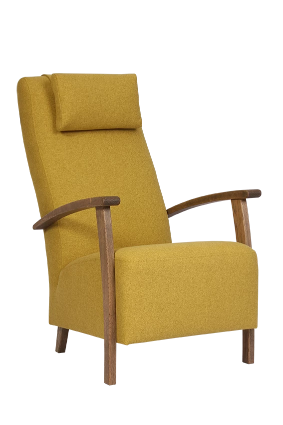 Puukäsinojallisessa Marja tuolissa on erinomainen istuinmukavuus. Korkea selkänoja ja säädettävä niskatyyny varmistavat ryhdikkään istuma-asennon. Tilaa samalla tuoliin suunniteltu Marja-rahi!