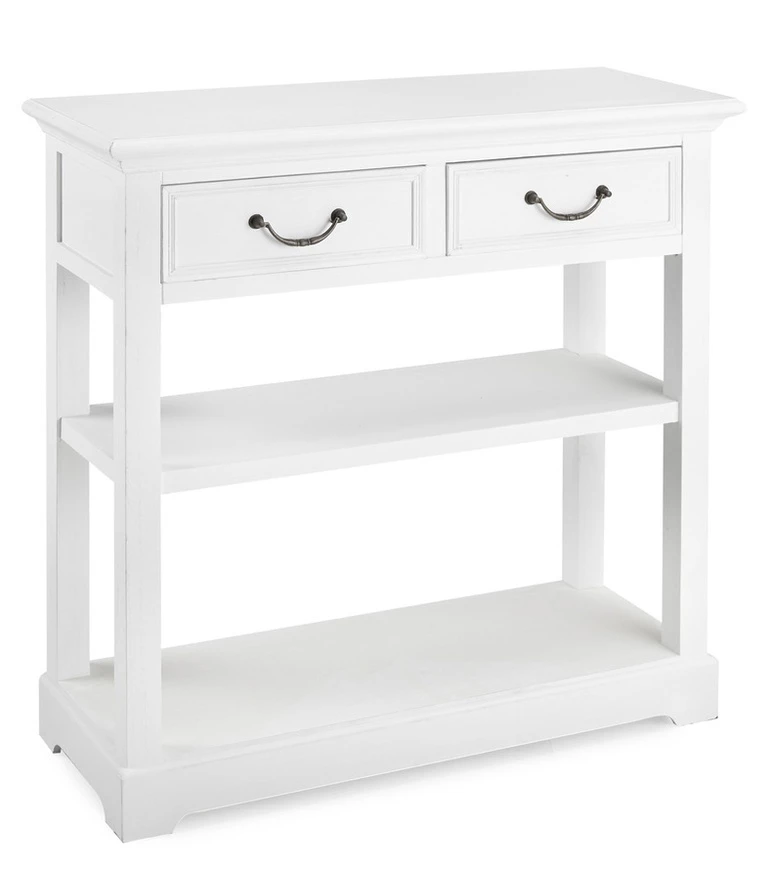 Lisää laskutilaa eteiseen saat valkoisesta Ludwig-eteispöydästä. Pikkutavarat mahtuvat kahteen pieneen laatikkoon ja lisää laskutilaa on alla olevalla välitasolla. Soveltuu sivupöydäksi muihinkin tiloihin.
