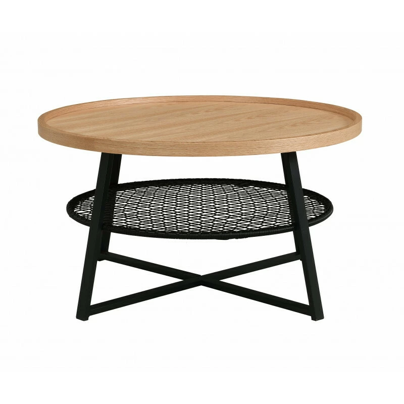 Mode sohvapöytä on trendikäs yhdistelmä mustaksi maalattua metallia ja luonnollista tammea. Pöydässä on muovirottingista punottu alataso, joka tarjoaa mukavasti säilytystilaa pikkutavaroille.