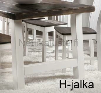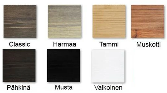 Pöytä on vahakäsiteltyä massiivimäntyä, jonka vahakäsittelyn voit halutessasi uusia kulutuksen mukaan. Jalkojen ja pöydän kannen väri valittavissa erikseen, yhdistele värejä sisustuksesi ja mieltymyksesi mukaan.