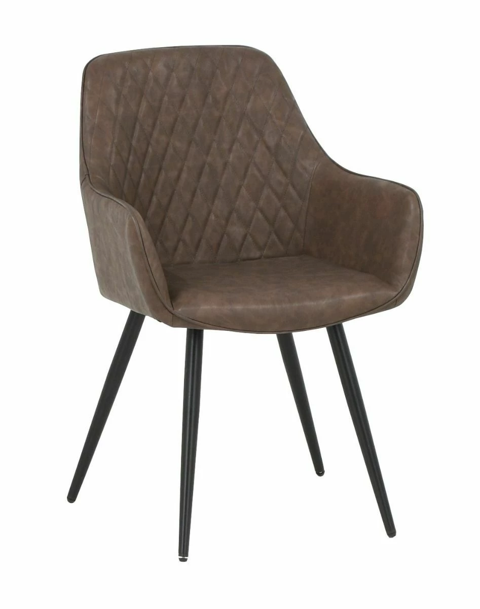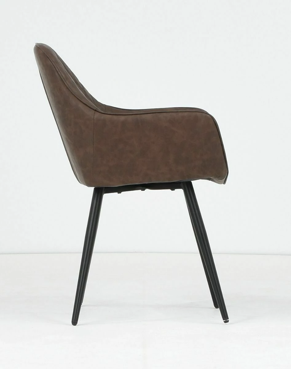 - Tuoli: ruskea keinonahka/musta metalli