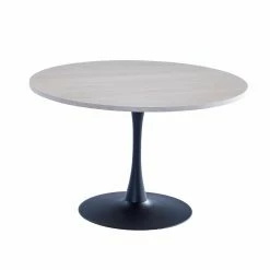 Nordics pyöreä ruokapöytä modernilla metallisella mustalla trumpettijalalla. Todella tukevan pöydän ympärille mahtuu 4-6 ruokatuolia.