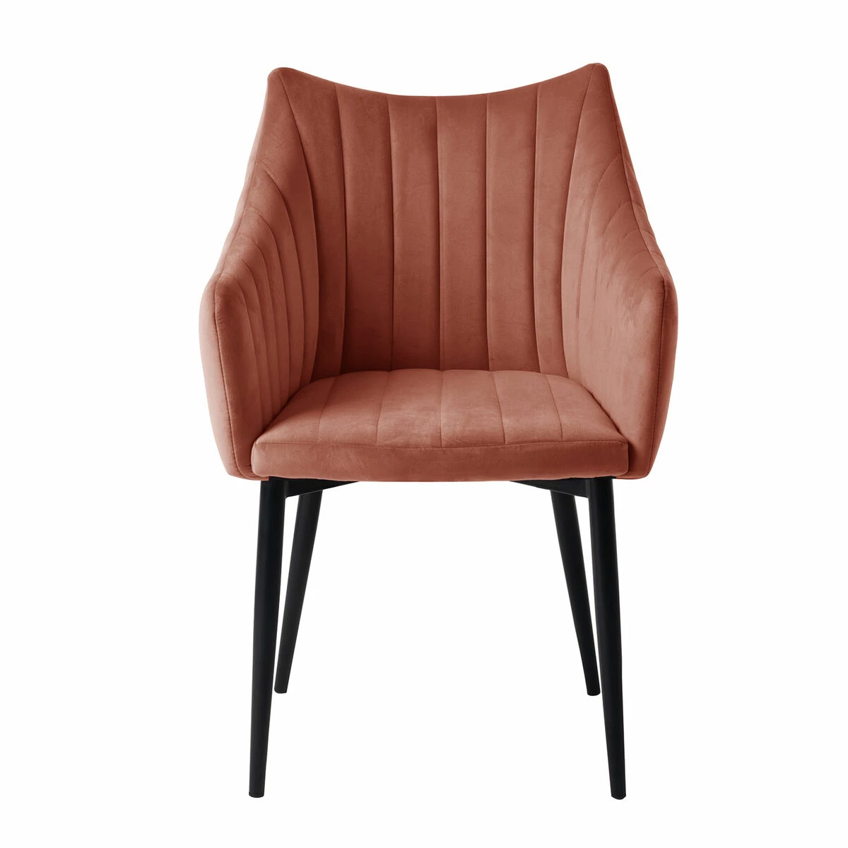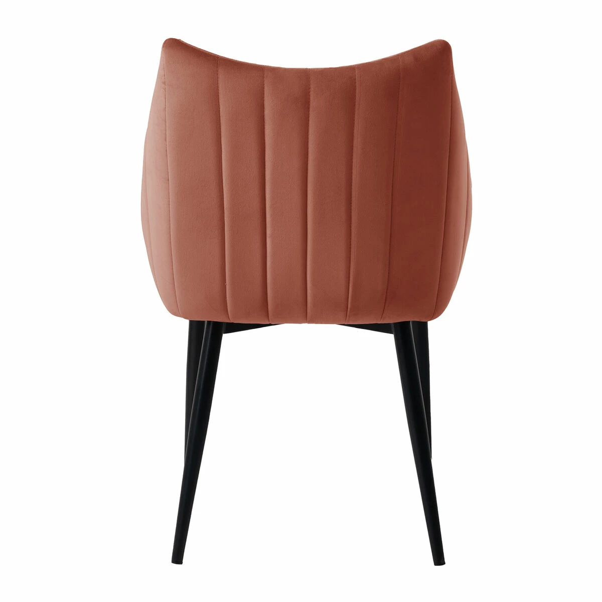 Moderni samettikankainen Olivia tuoli kuppimaisella istuimella ja selkänojalla. Tuolissa on koristeelliset tikkaukset ja pehmustettu istuin ja selkänoja.