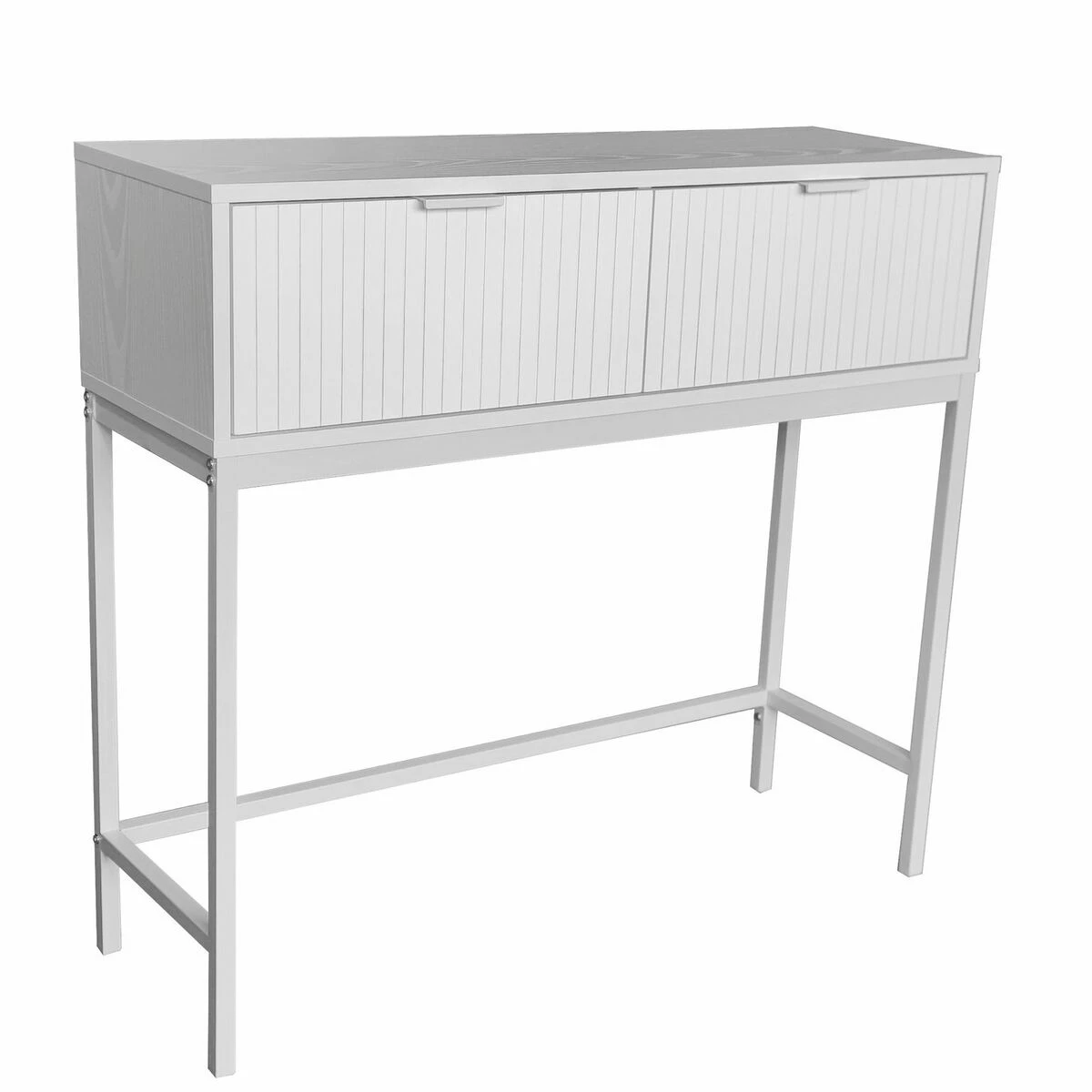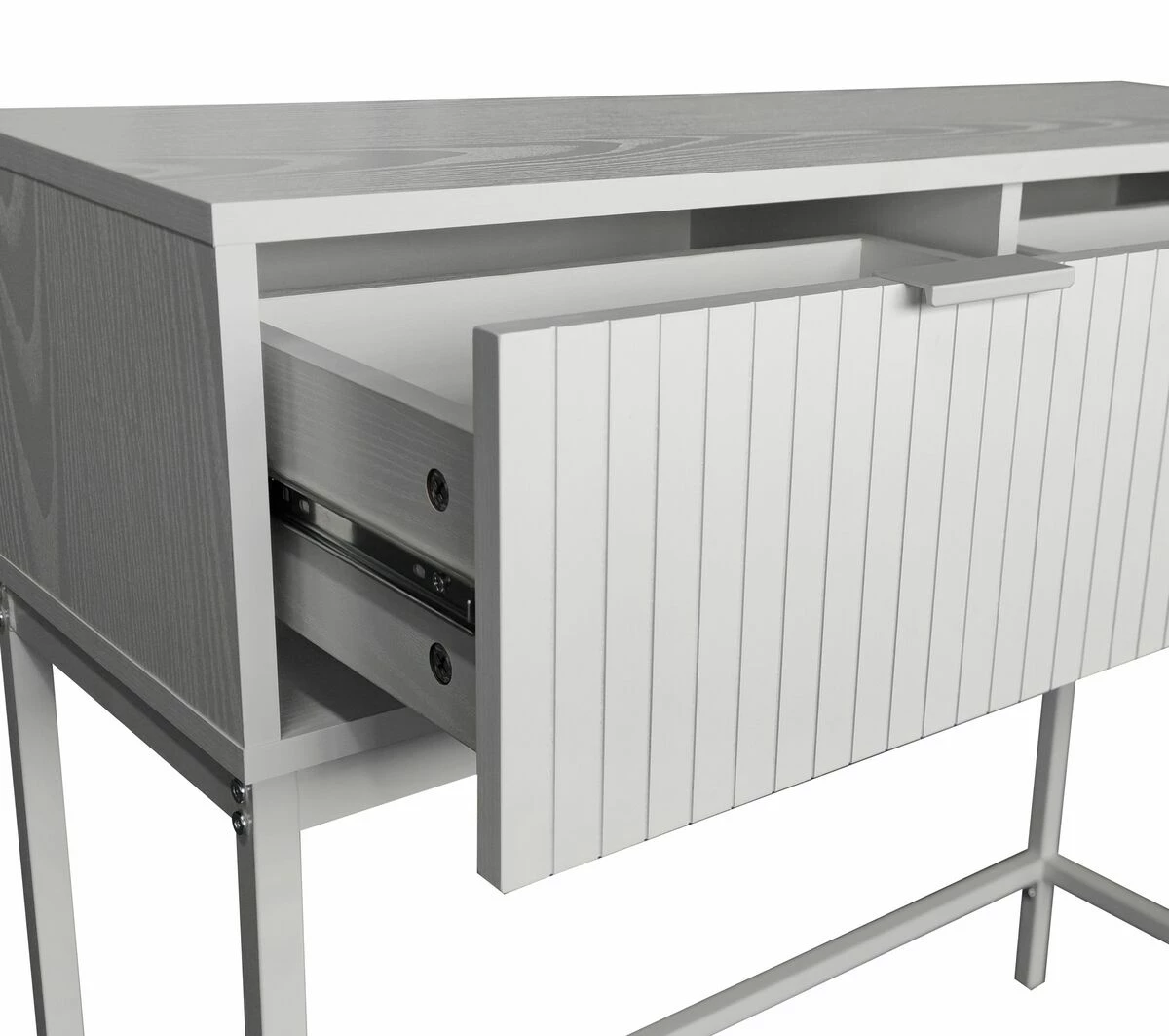 Siera sivupöydän valkoinen väri yhdistettynä metallijalkaan ja kahvaan luo modernin ja hillityn tyylikkään kokonaisuuden.