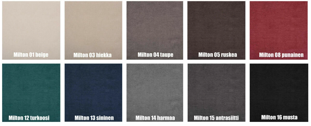 - Istuin- ja selkänojatyynyissä HR-vaahtomuovi/höyhen/vanukuitu-sekoitetta, istuinpehmeys soft