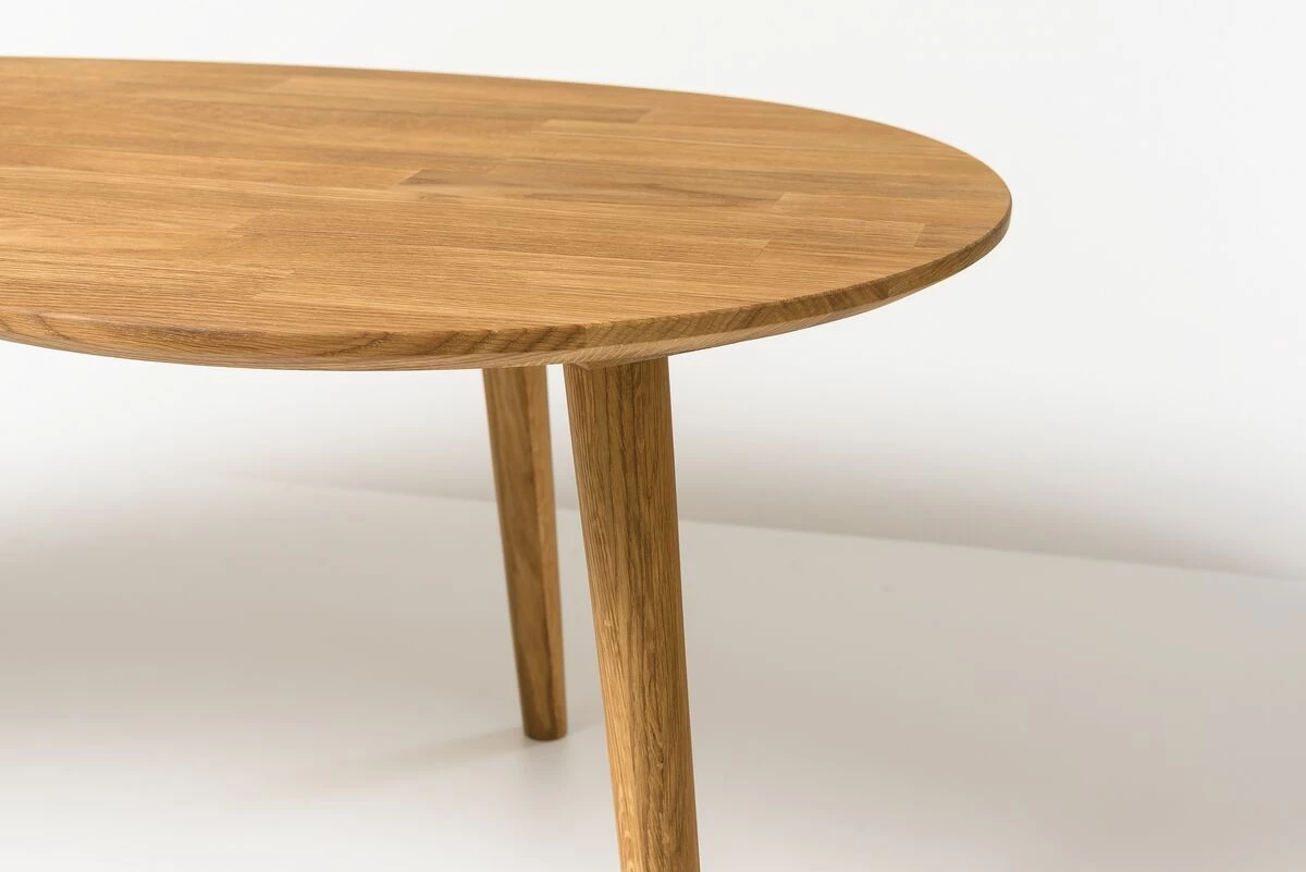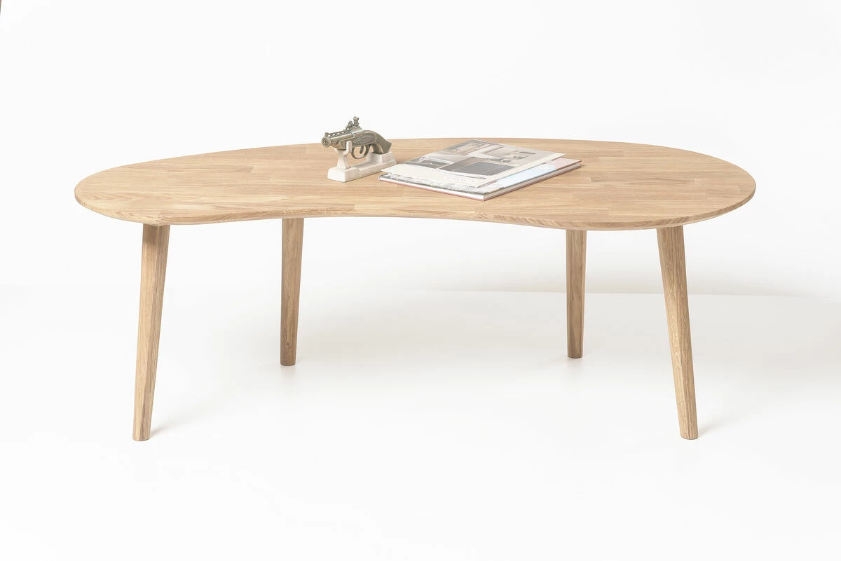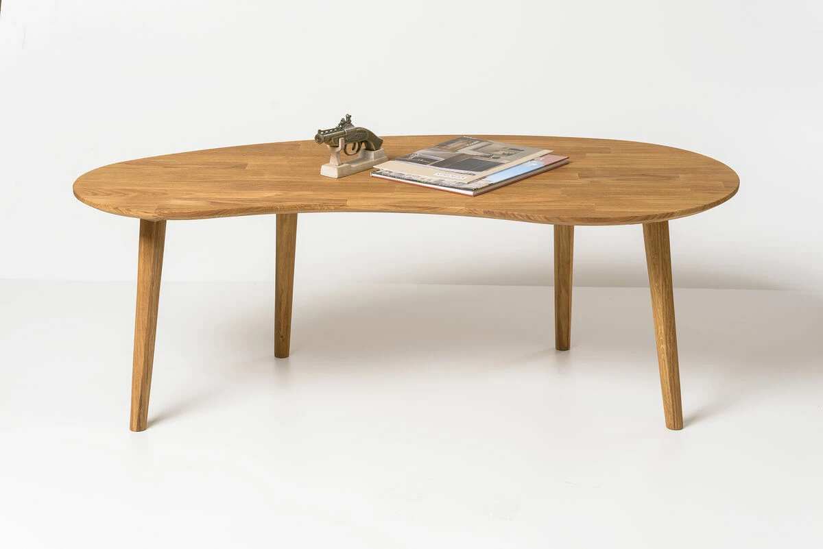 Massiivitammisen Dama-tuotesarjan ihastuttava sohvapöytä on persoonallisesti muotoiltu.
