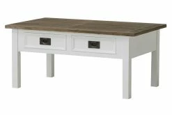 Kuusipuusta ja mdf-levystä valmistettu tyylikäs sohvapöytä jossa kansi on rouheaa kuusipuuta, joka tuo sisustukseen lämmintä maalaishenkisyyttä. Pöydän vetimet ovat metallia ja antavat oman leimansa tälle kauniille kalusteelle.