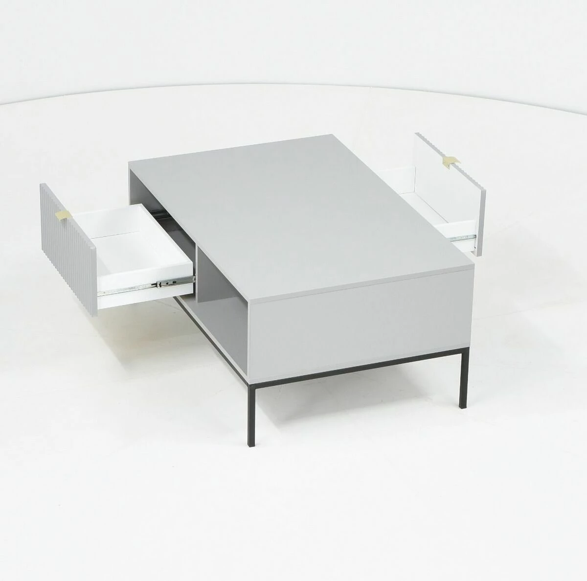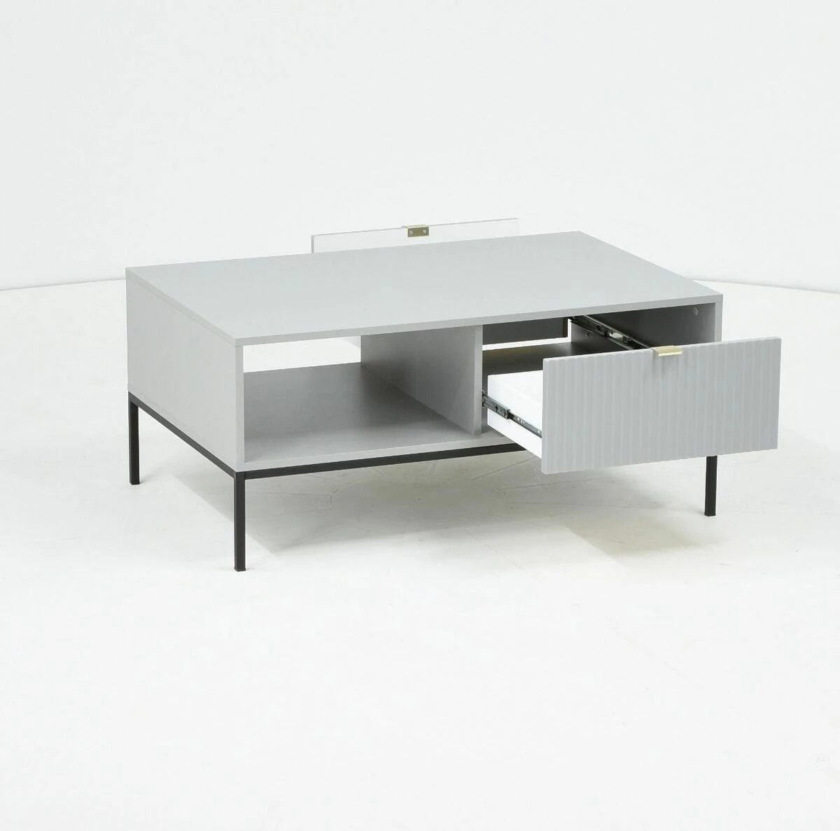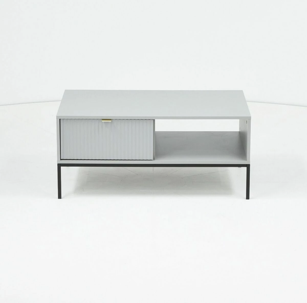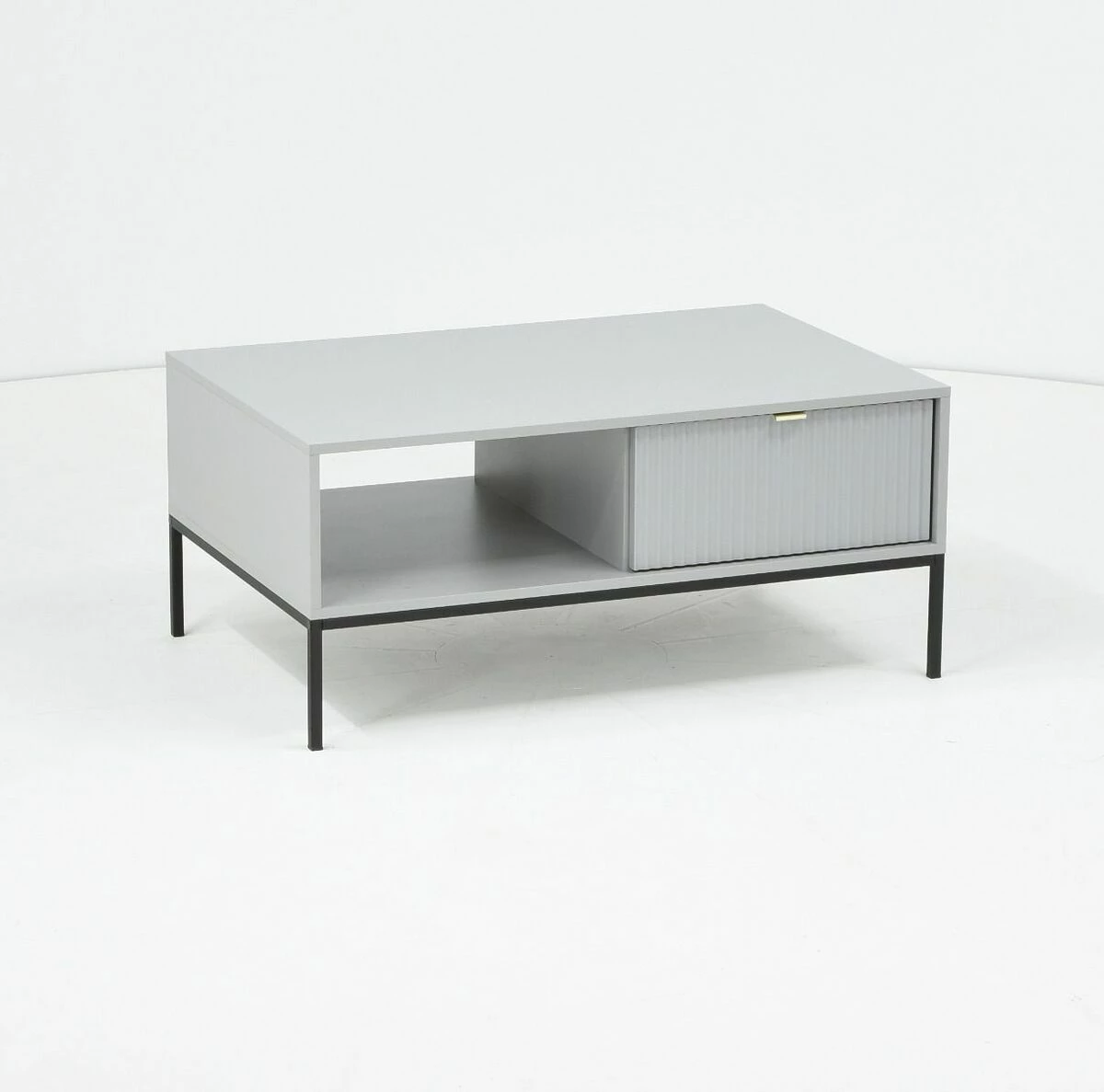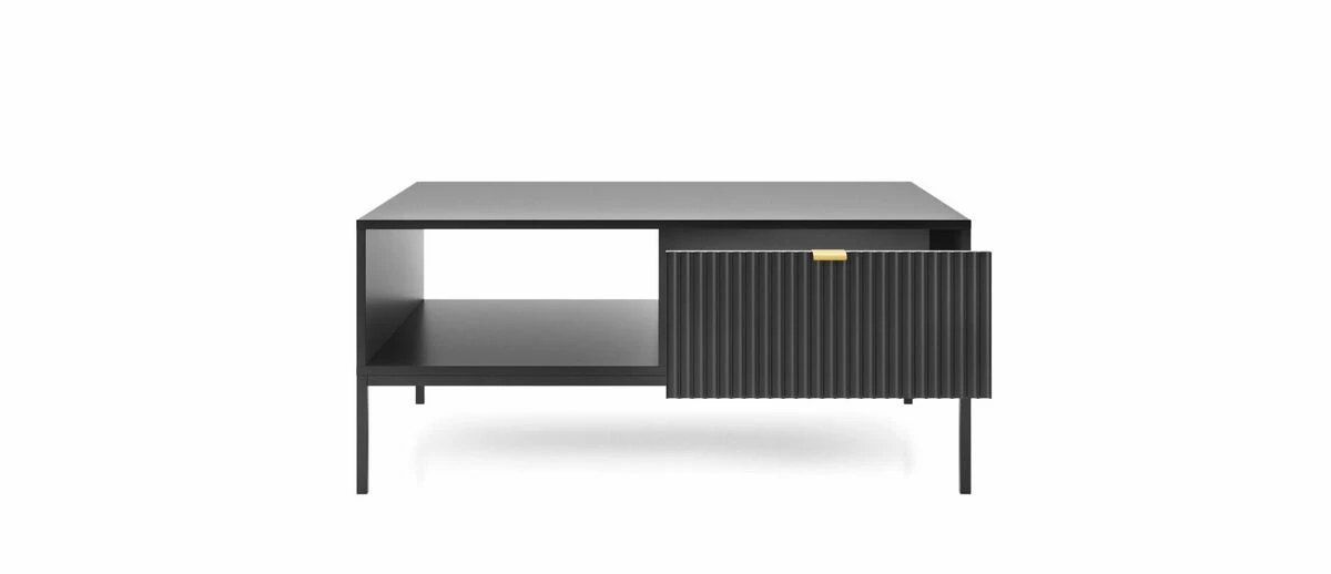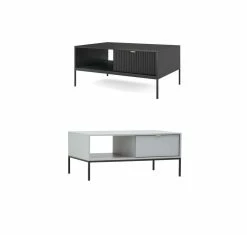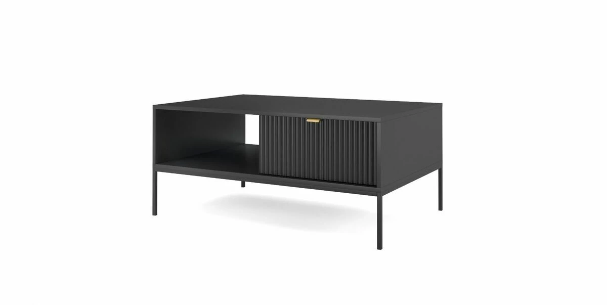 Tyylikkässä ja sirossa Latte sohvapöydässä on yksi vetolaatikko ja tilava avotaso. Etusarjoissa olevat urat antavat kauniin, yksilöllisen ilmeen. Saatavana mustana tai harmaana.
