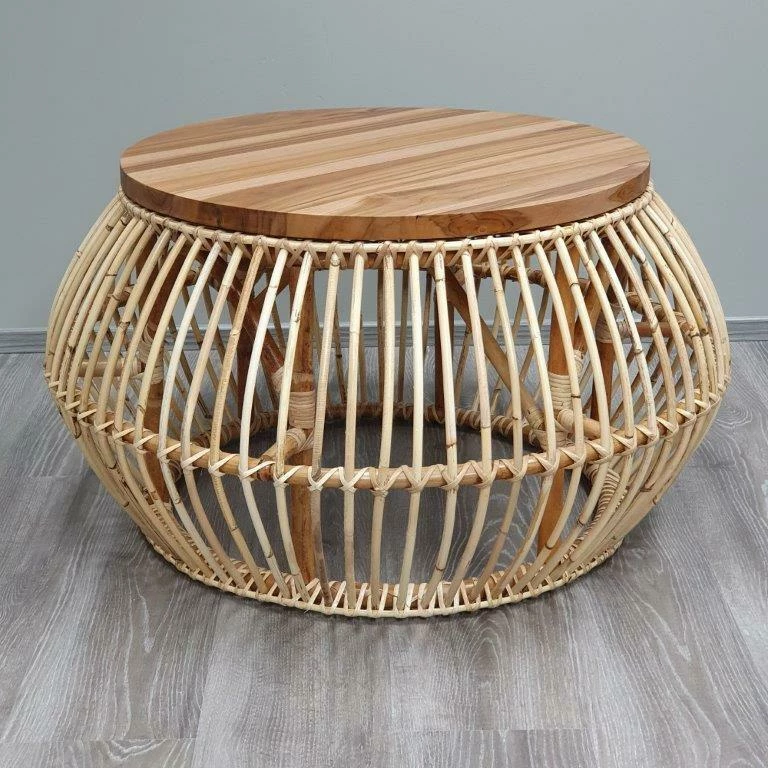 Kaunis Selandia sohvapöytä on helppo yhdistää erilaisiin sisustustyyleihin. Pöydässä yhdistyy tyylikkäästi rottinkinen jalkaosa ja aitopuinen kansi, jossa puunsyyt tulevat hienosti esiin ja antavat jokaiselle pöydälle yksilöllisen ilmeen.