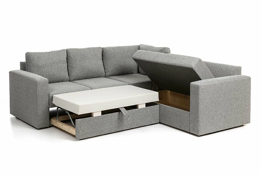Moderni ja tyylikäs Roma vuodekulmasohva tarjoaa reilusti istumatilaa isommallekin perheelle. Sohva muuntuu 130×190 cm vuoteeksi hetkessä.