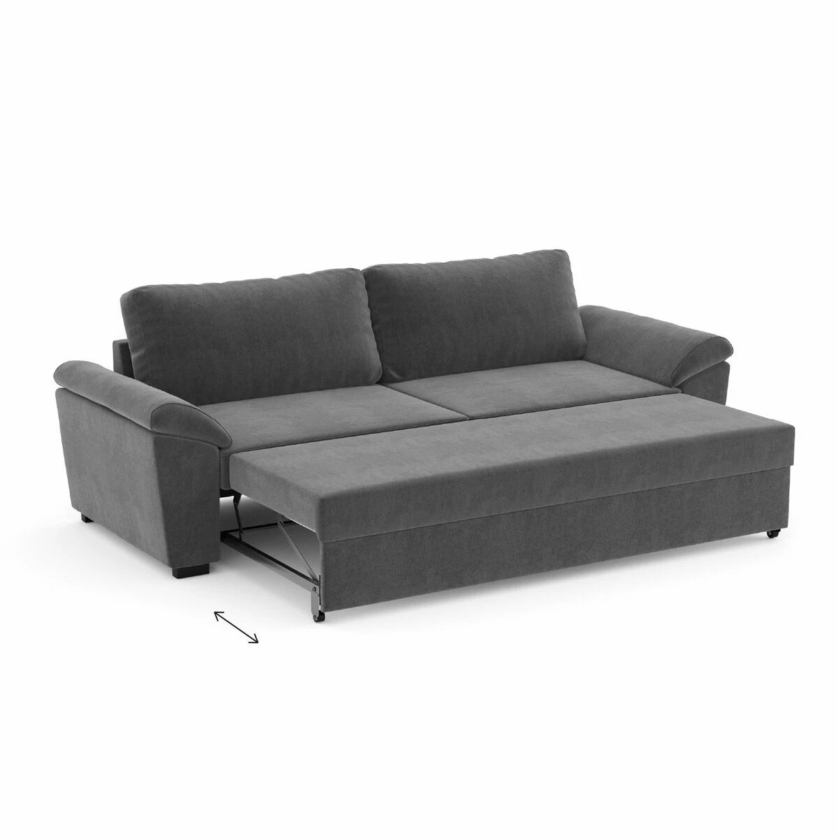 Kahdella tyylikkään harmaalla sävyllä verhoiltu Virginia vuodesohva tarjoaa miellyttävää istuinmukavuutta sekä tilavan vuoteen jopa kahdelle aikuiselle.