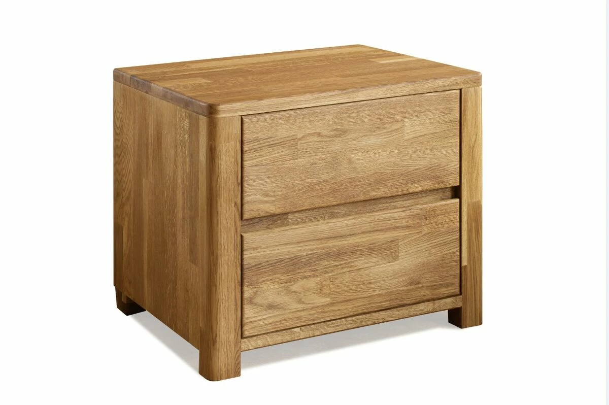 Massiivitamminen yöpöytä kahdella vetolaatikolla.