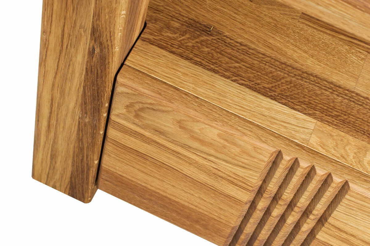Massiivitammesta valmistettu Valeria yöpöytä avotasolla ja vetolaatikolla. Yöpöytä on valmistettu massiivitammesta, jonka pinta on viimeistelty puuöljyllä. Laatikossa on herkästi liukuvat metallikiskot. Tuote on saatavana kolmella eri petsisävyllä.